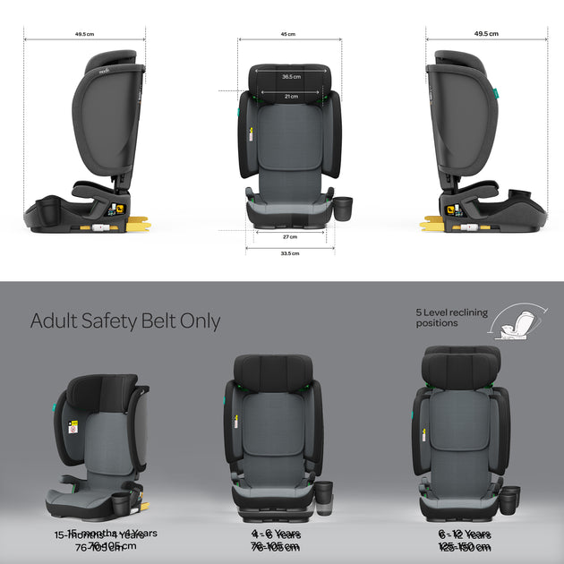MOON GYRO Baby Car Seat for Child Group 0+/1/2/3 -Grey