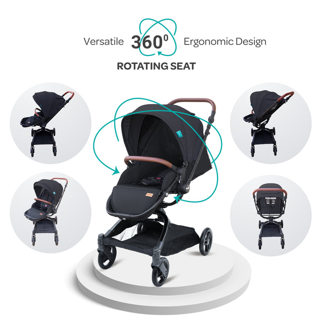 MOON Riche Advanced Baby Stroller ,360° Rotating Handle-Black