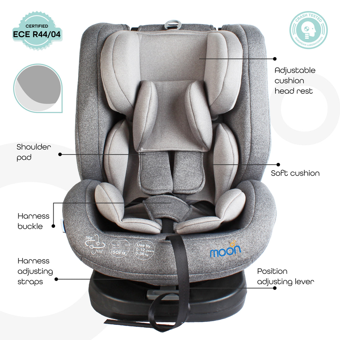 يجمع مقعد السيارة Moon Brand™ Rover بين ميزات الأمان المتقدمة والراحة والمتانة طويلة الأمد، مما يجعله الاستثمار المثالي لسفر طفلك الآمن.
