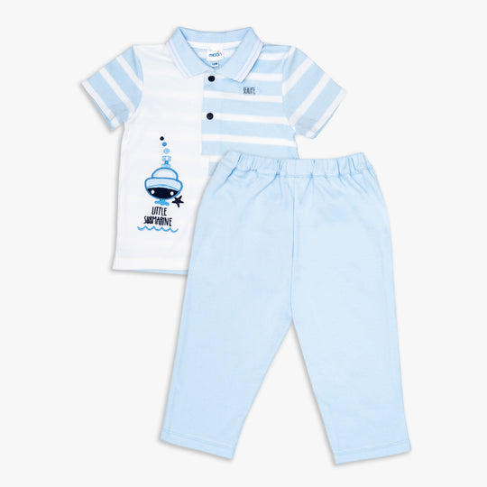 طقم بلوزة وبنطال أزرق