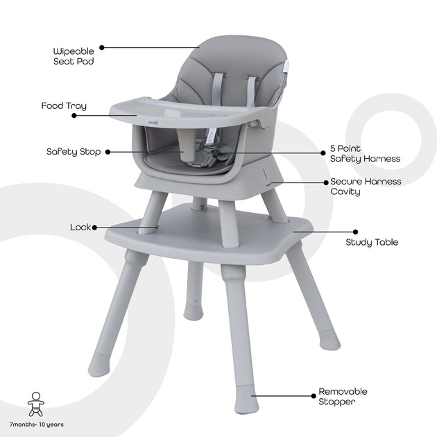 كرسي مرتفع للأطفال 6 في 1 من مون - رمادي