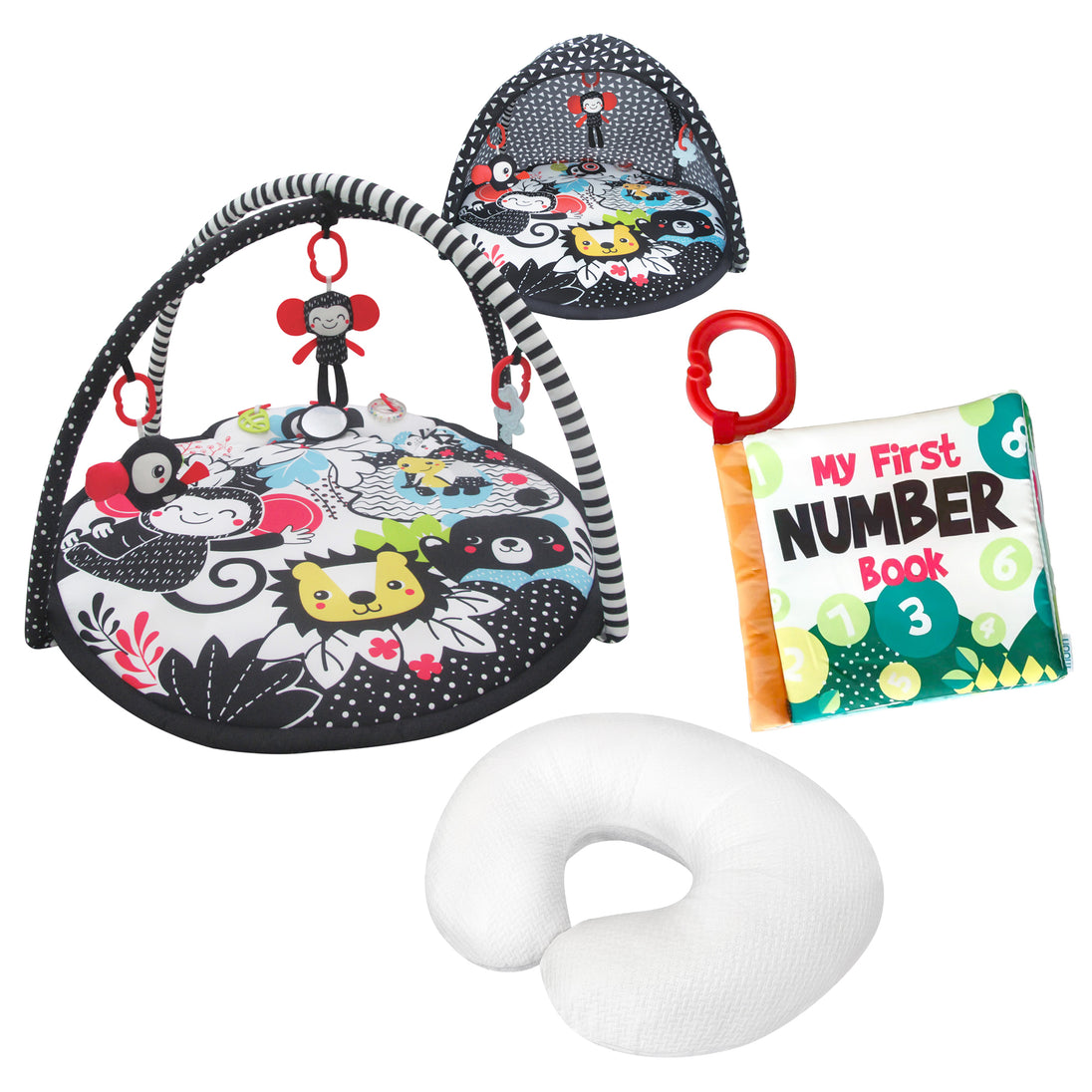 سجادة لعب MOON Chirpy - أصدقاء الغابة / وسادة الرضاعة العضوية MOON (أبيض، قماش عضوي) / كتاب MOON القماشي الناعم - أرقام