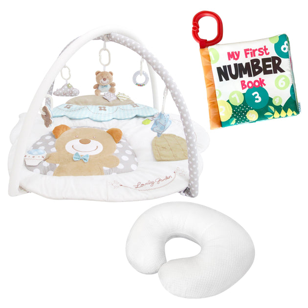 سجادة لعب مون بيركي (دب إبريق الشاي) / وسادة الرضاعة العضوية مون (أبيض، قماش عضوي) / كتاب مون القماشي الناعم (أرقام)