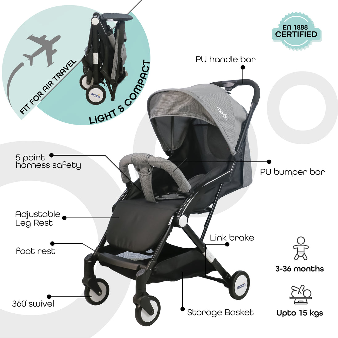 تجمع عربة الأطفال Travel-Lite Cabin من Moon Brand™ بين الوظيفة والقدرة على الحمل والأناقة، مما يجعلها خيارًا ممتازًا للآباء أثناء التنقل.