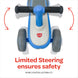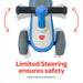 - مقابض قبضة إضافية: تتميز المقابض بمقابض مانعة للانزلاق، مما يوفر قبضة آمنة للأطفال ويمنع انزلاق أيديهم أثناء الاستخدام. كما أن التوجيه المحدود يمنع انقلاب الدراجة، بينما تمنع العجلات المغلقة انزلاق أقدام الطفل.