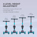 - تصميم أنيق وسهل الحمل - يتميز جهاز MOON Xplora بهيكل أسود وأزرق جذاب، وعجلات مضاءة بمصابيح LED. كما أنه مزود بآلية طي بزر واحد، مما يتيح لك حمله بسهولة.