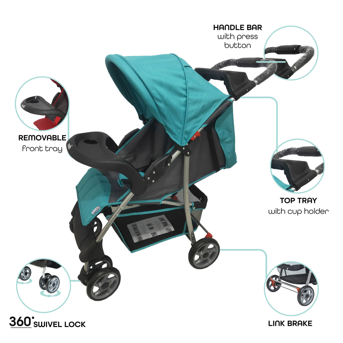 حزام أمان بخمس نقاط: يضمن تثبيت طفلك بشكل آمن أثناء التنزه.