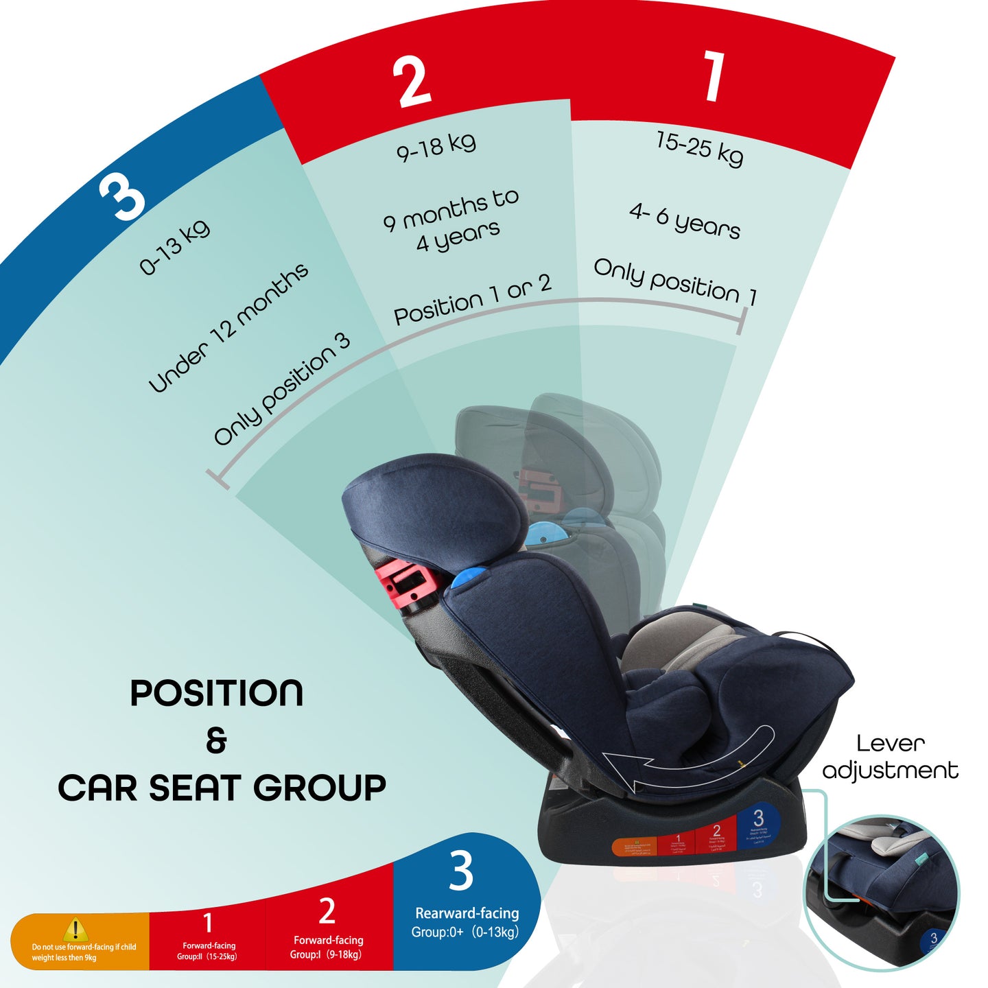 • يتحول بسهولة من وضعية مواجهة للخلف للأطفال الرضع (حتى وزن 13 كجم) إلى وضعية مواجهة للأمام للأطفال الصغار (حتى وزن 25 كجم)، مما يضمن الاستخدام طويل الأمد