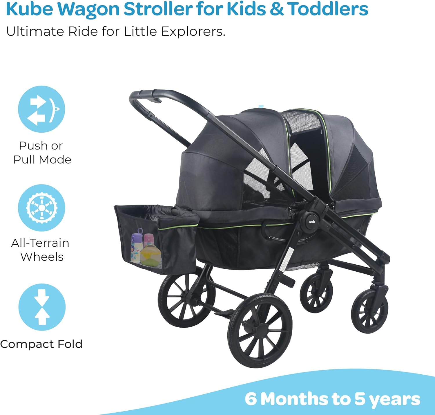 The Moon Brand Kube Wagon Stroller for Kids & Toddlers, Push & Pull Convertible Wagon All-Terrain Wheels, UPF 50+ Canopy, BPA-Free Snack Tray, Compact Fold, Storage, 6M–4Y, 24kgs/Seat-Black