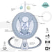 MOON baby rocker chairs keep your little one safe and entertained with fun toys and soothing vibrations. Designed to promote sensory development, it offers a break for busy parents. The padded safety harness ensures secure seating. A perfect baby shower gift for new parents. Fabric: 100% Polyester.