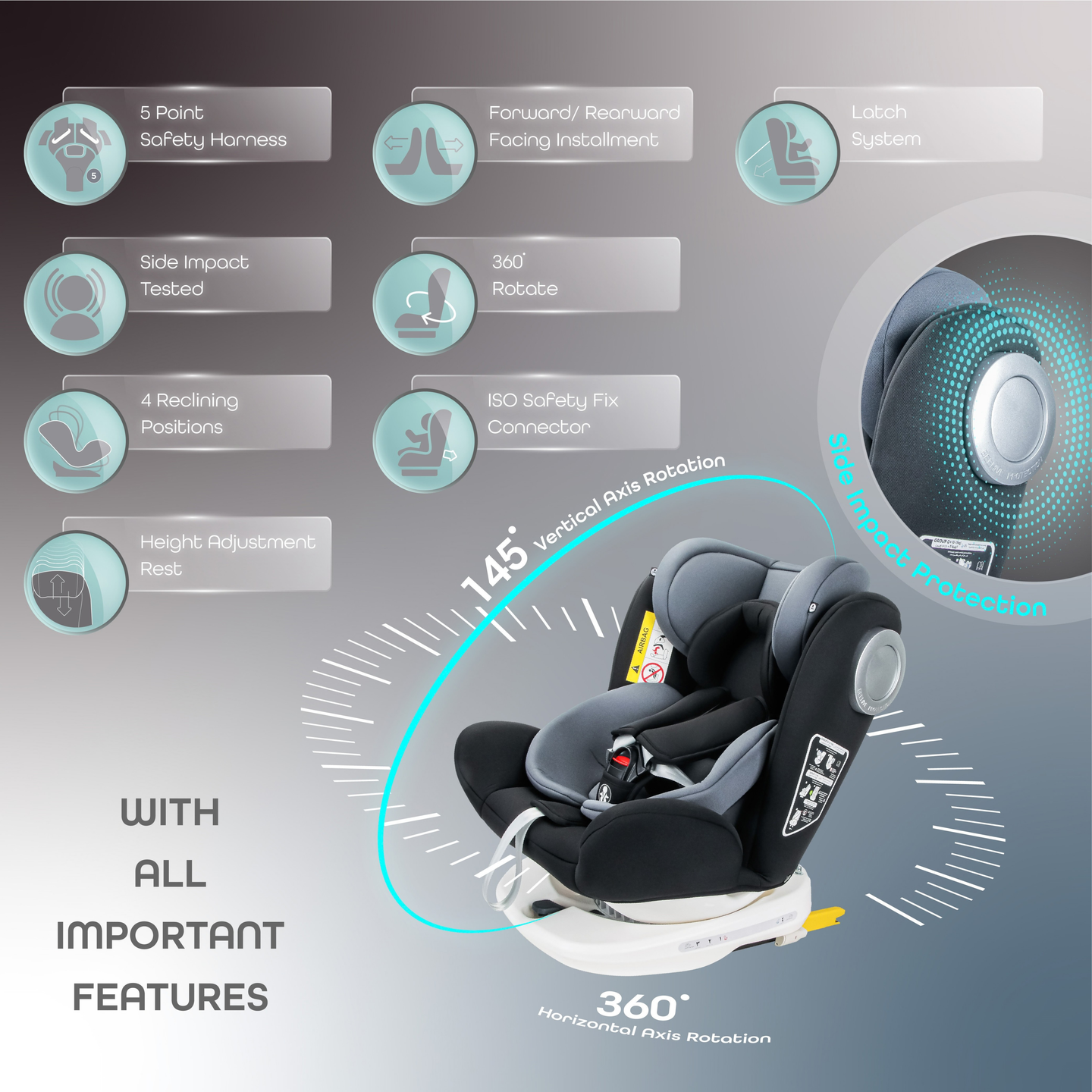 The Moon Brand™ Gyro Fix Multi-Functional 360 Car Seat with Isofix – Safety, Comfort, and Style Redefined!