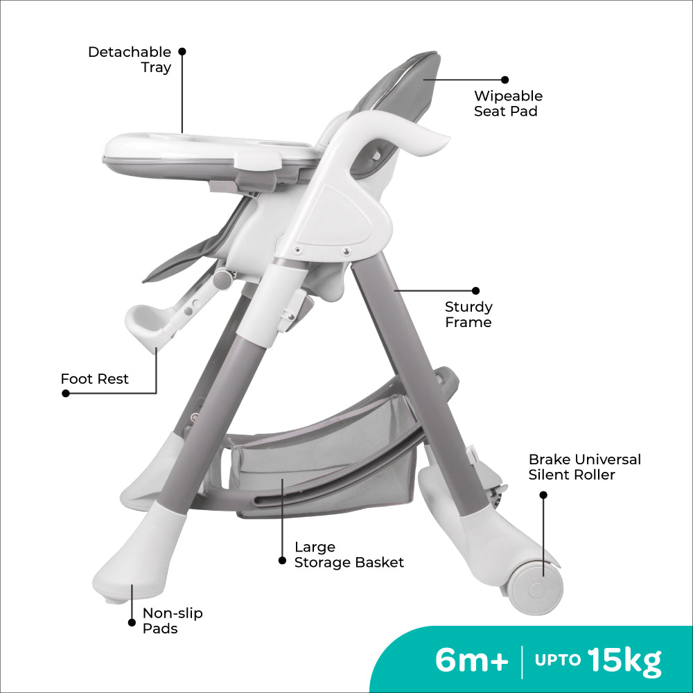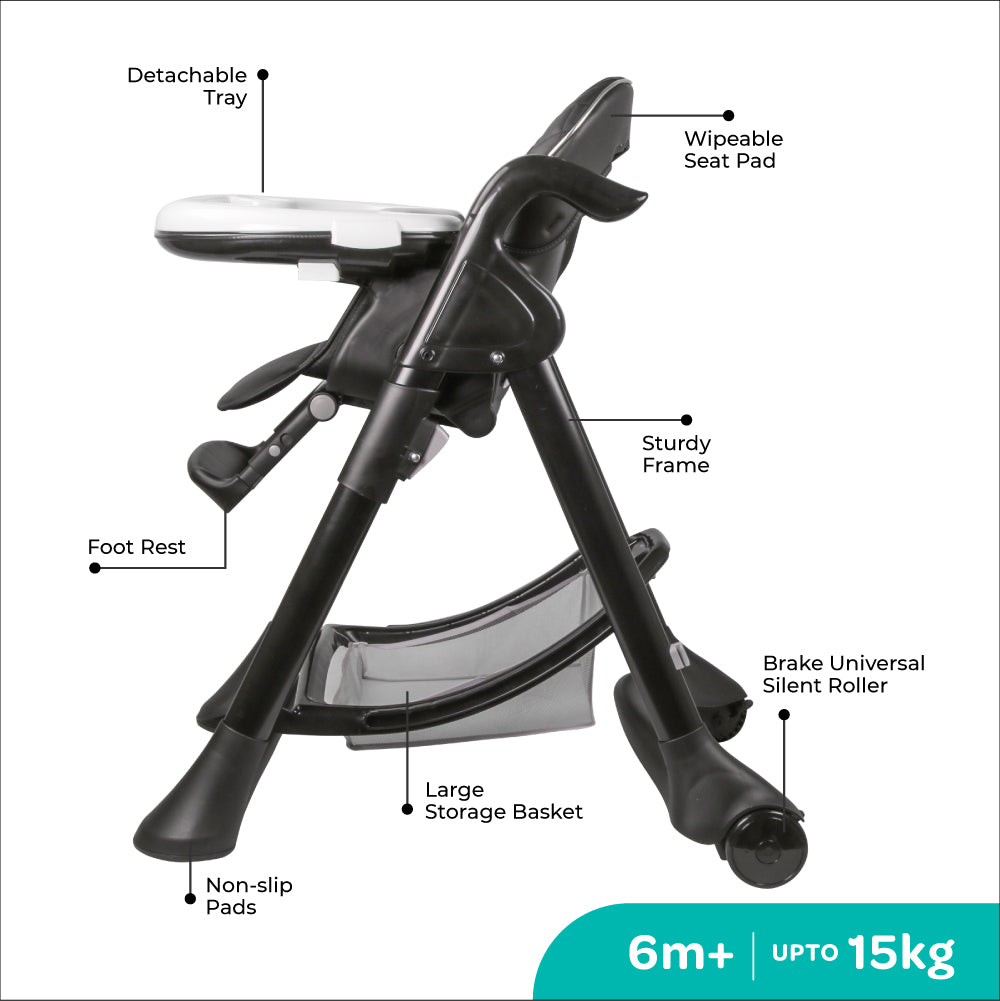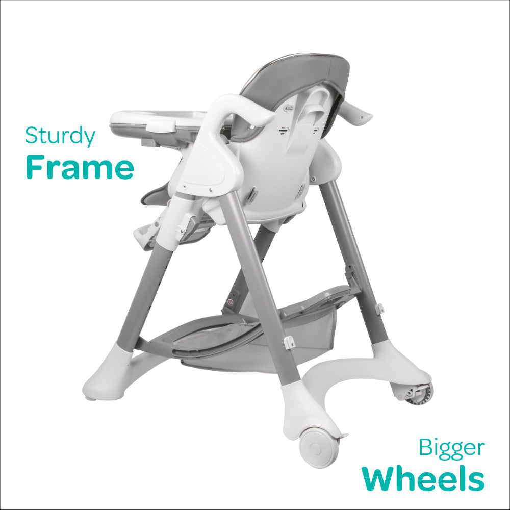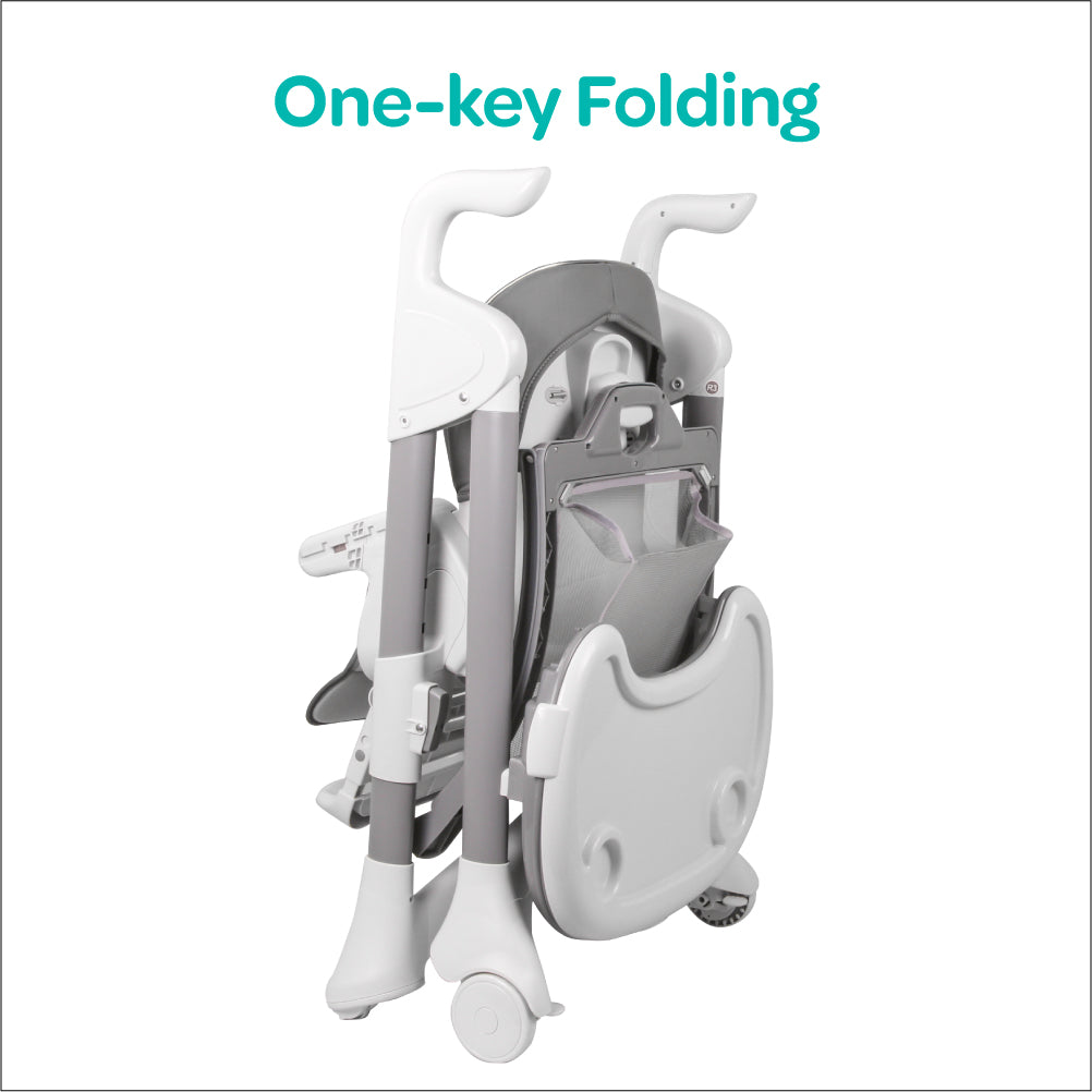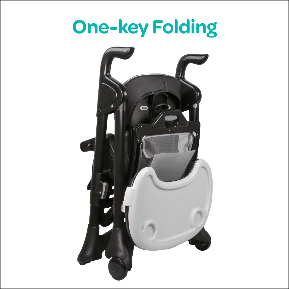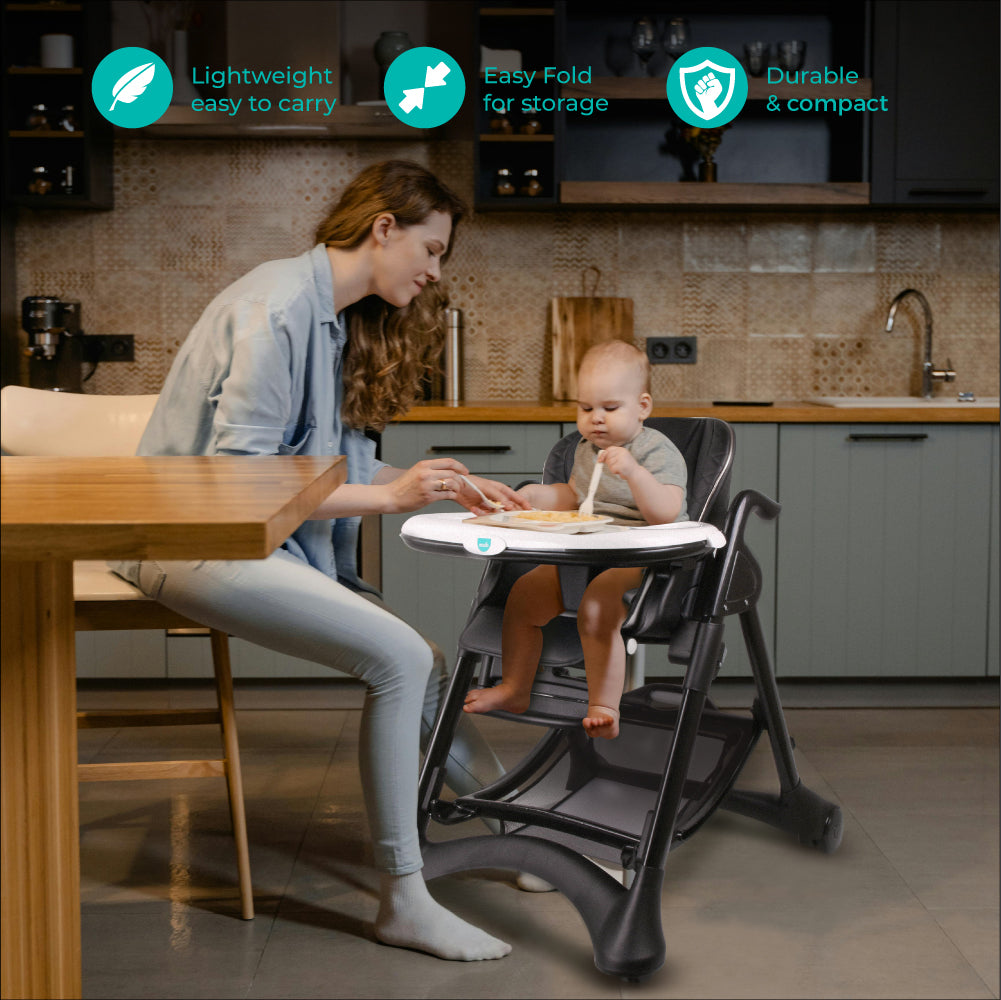 - Portable & Space-Saving: With its foldable design and wheels, this highchair is perfect for families on the go. The compact, space-saving feature allows for easy storage and portability, making it ideal for homes with limited space.