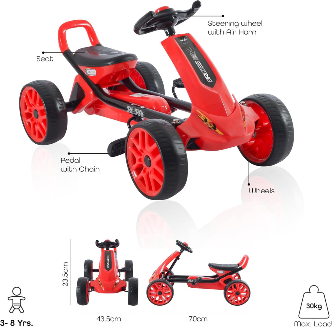 The Moon Brand Brizee Go Kart.Suitable For 3 To 8 Years. Holds Upto 30 Kgs. Adjustable And Comfortable Seat.4 Sturdy Wheels.Cart.Utmost Comfort And Safety- Red and black